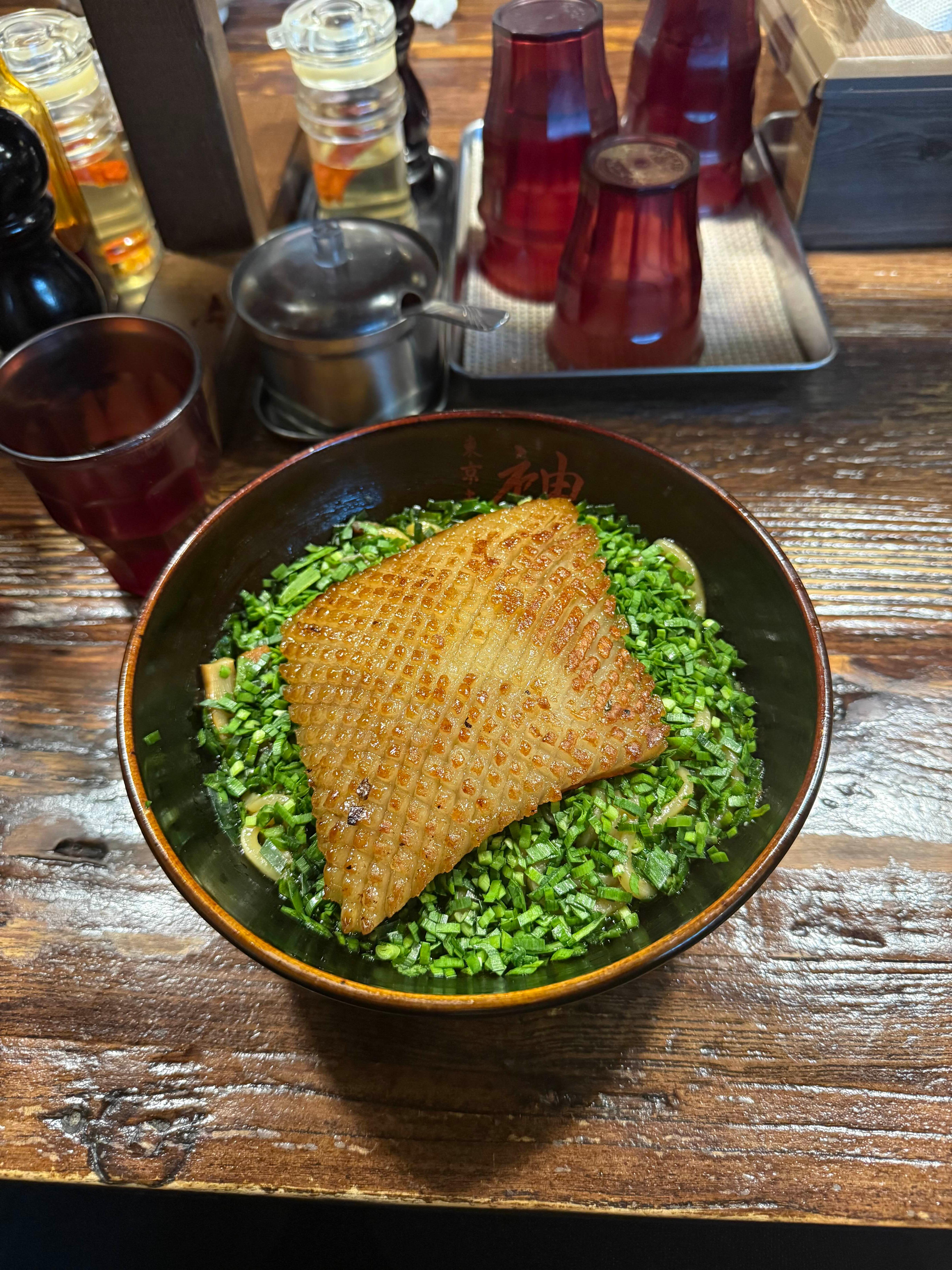 다른 가게들도 웨이팅이 꽤 길어서 전부터 먹고 싶었던 칸다소바에서 '껍데기 아부라소바'를 먹게 되었다.